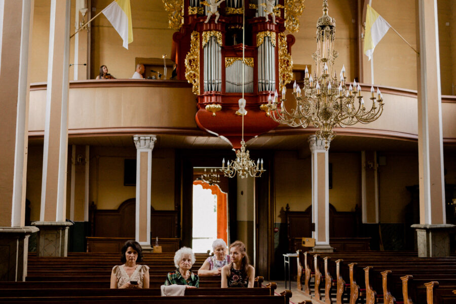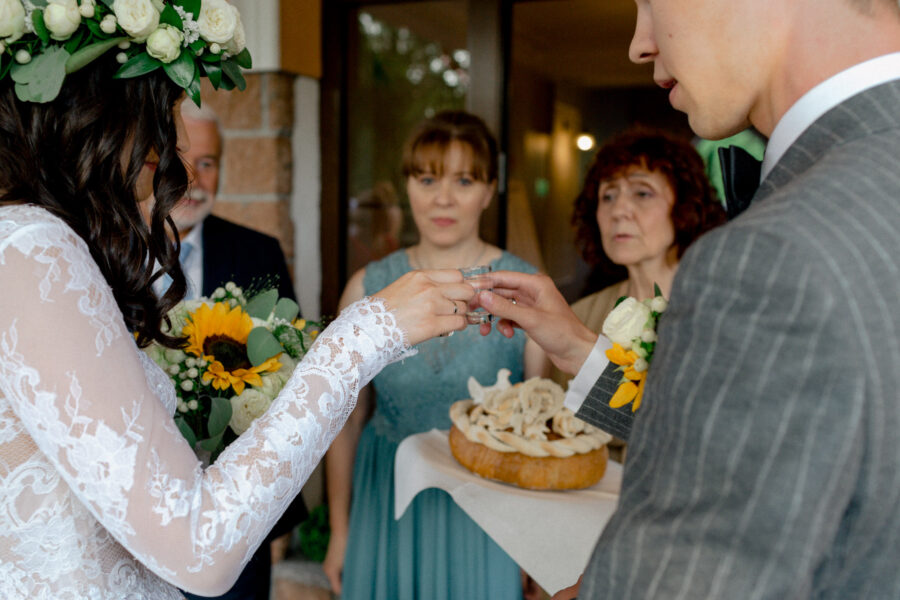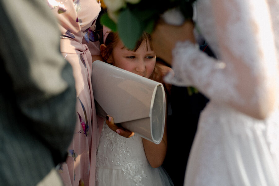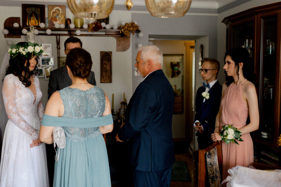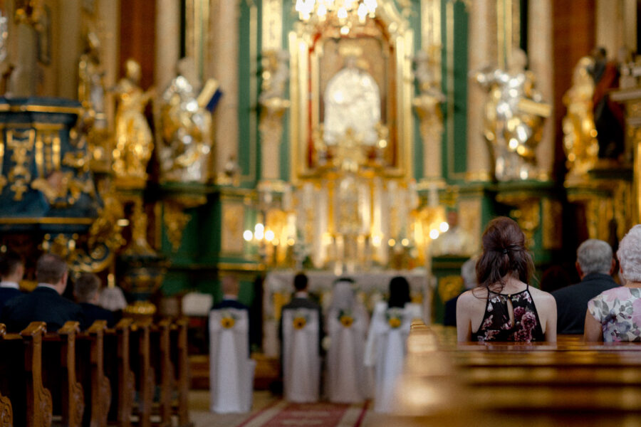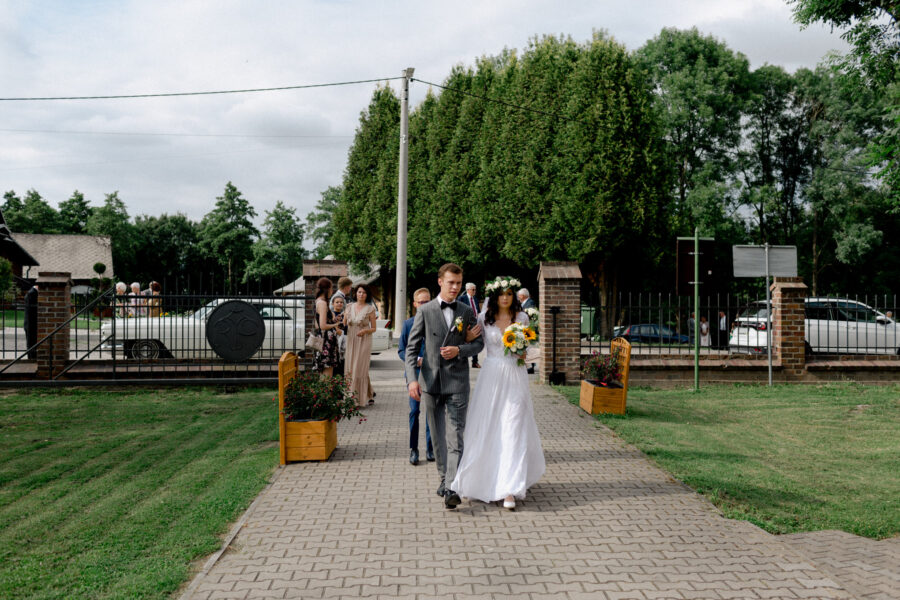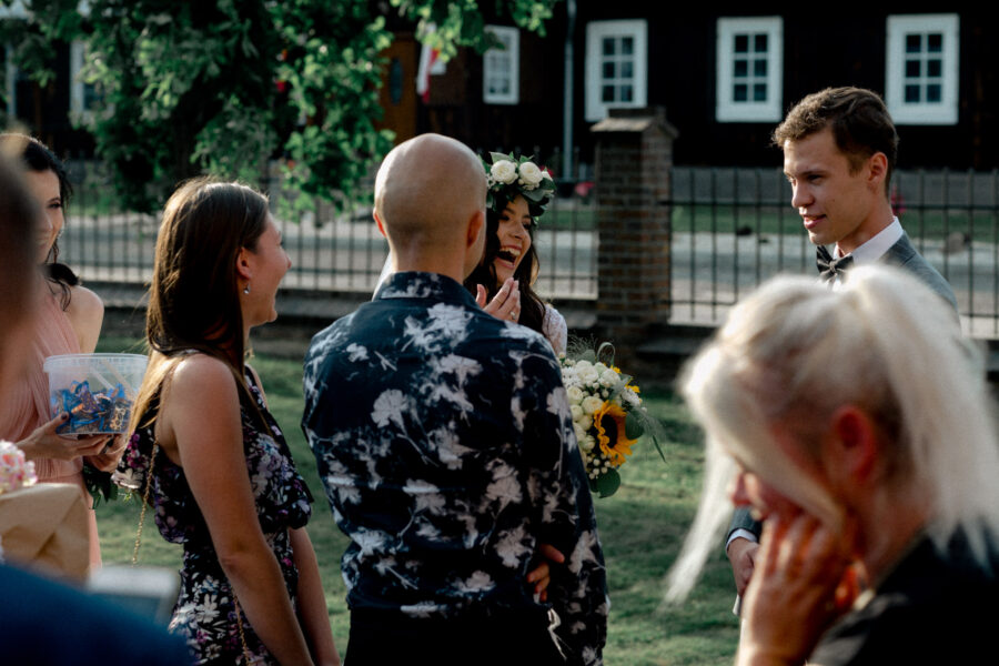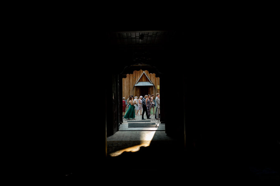 Ceremonia ślubna odbyła się w pięknym, drewnianym kościółku z XV wieku, w parafii Narodzenia Najświętszej Maryi Panny w Krzeszowie. To magiczne miejsce dodatkowo podkreśliło uroczystość tego dnia.