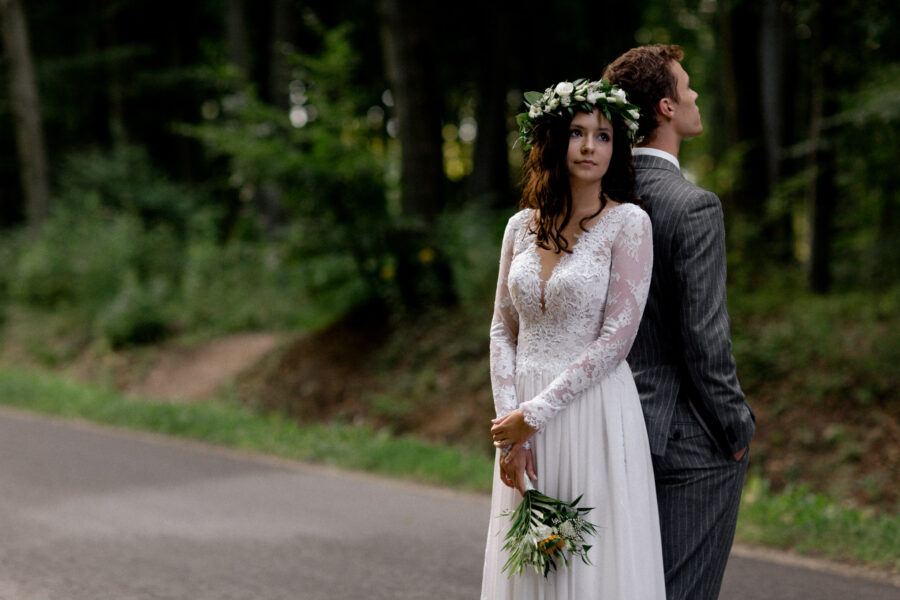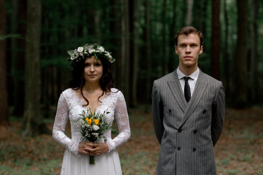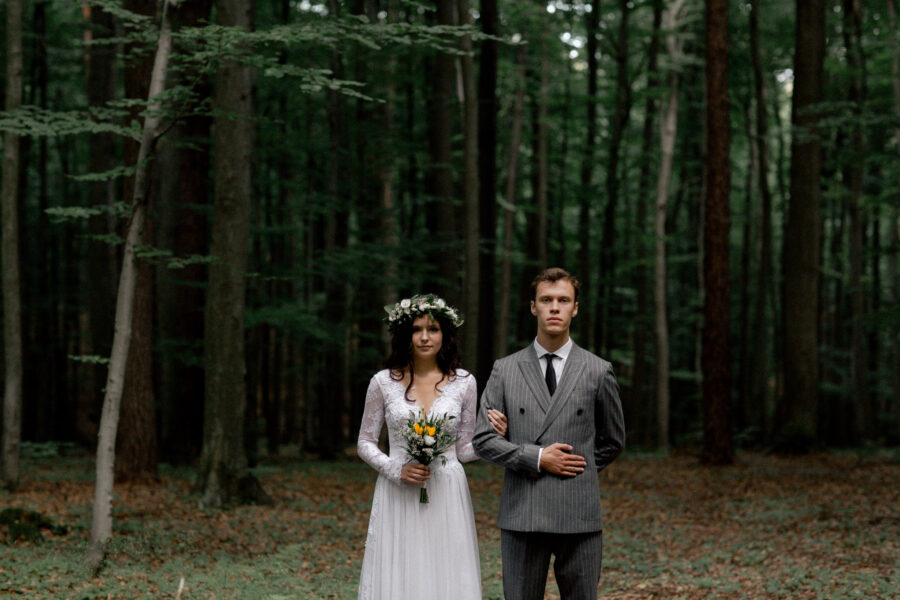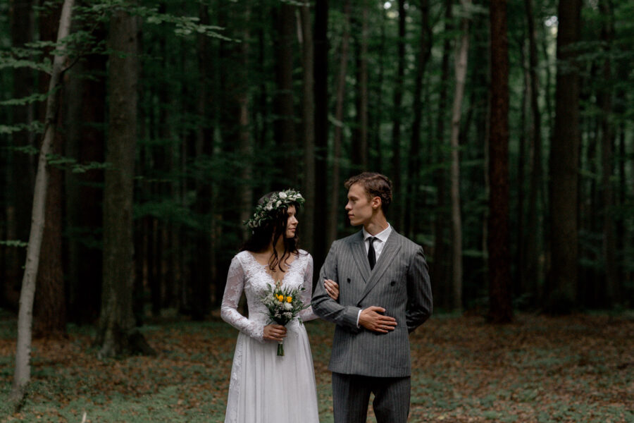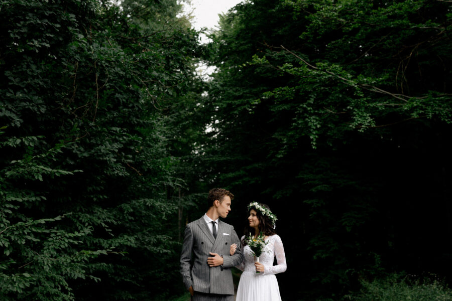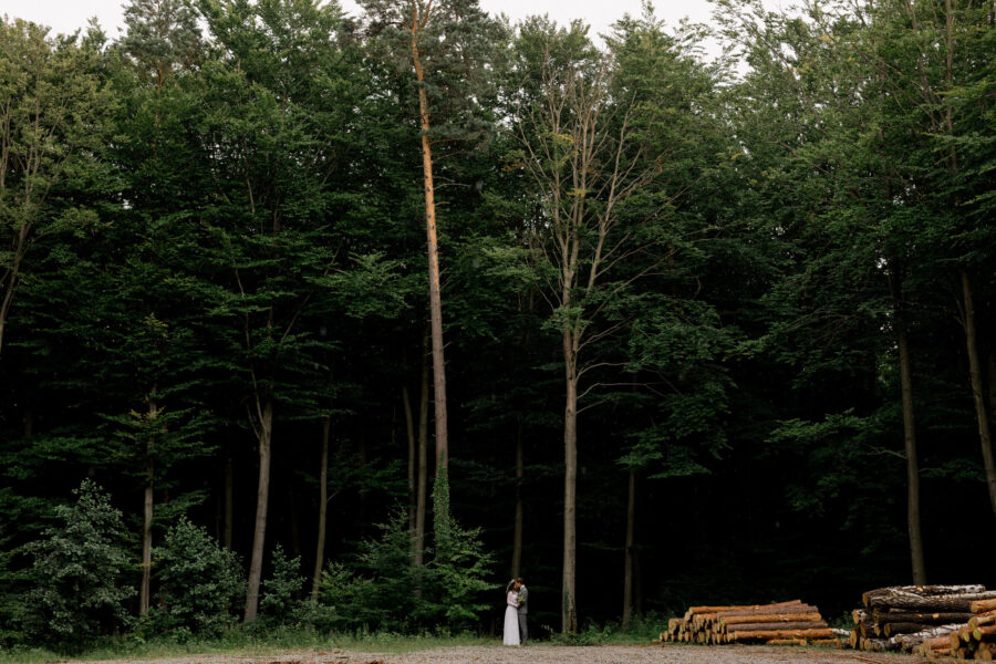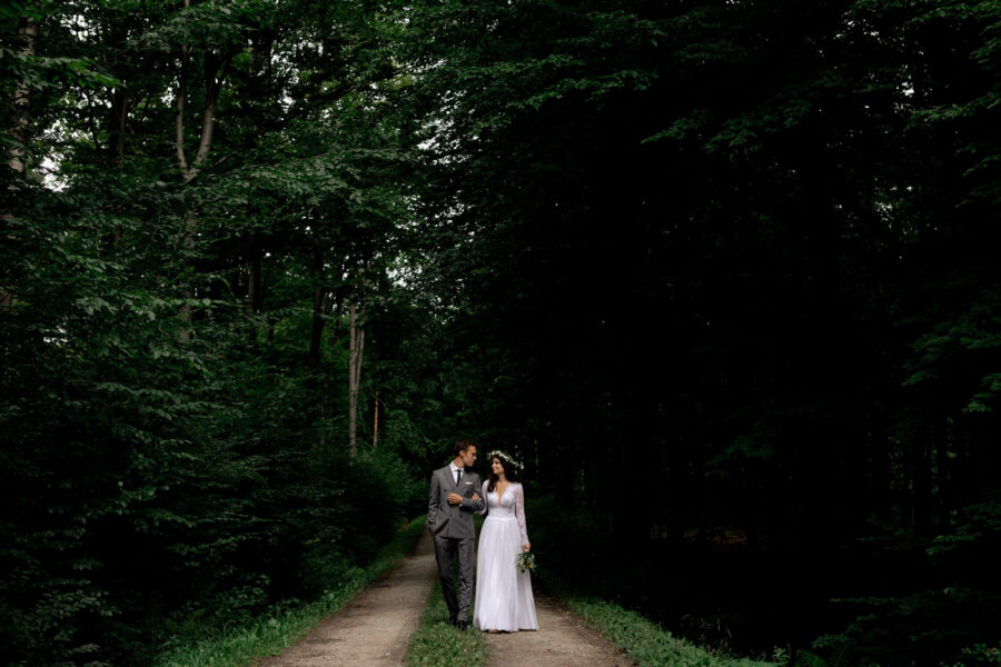 Dopełnieniem tego wyjątkowego dnia było przeprowadzenie sesji plenerowej w lesie, otoczonym zielenią i wszystkimi leśnymi stworzeniami, które z zaciekawieniem i zachwytem przyglądały się tej pięknej parze.