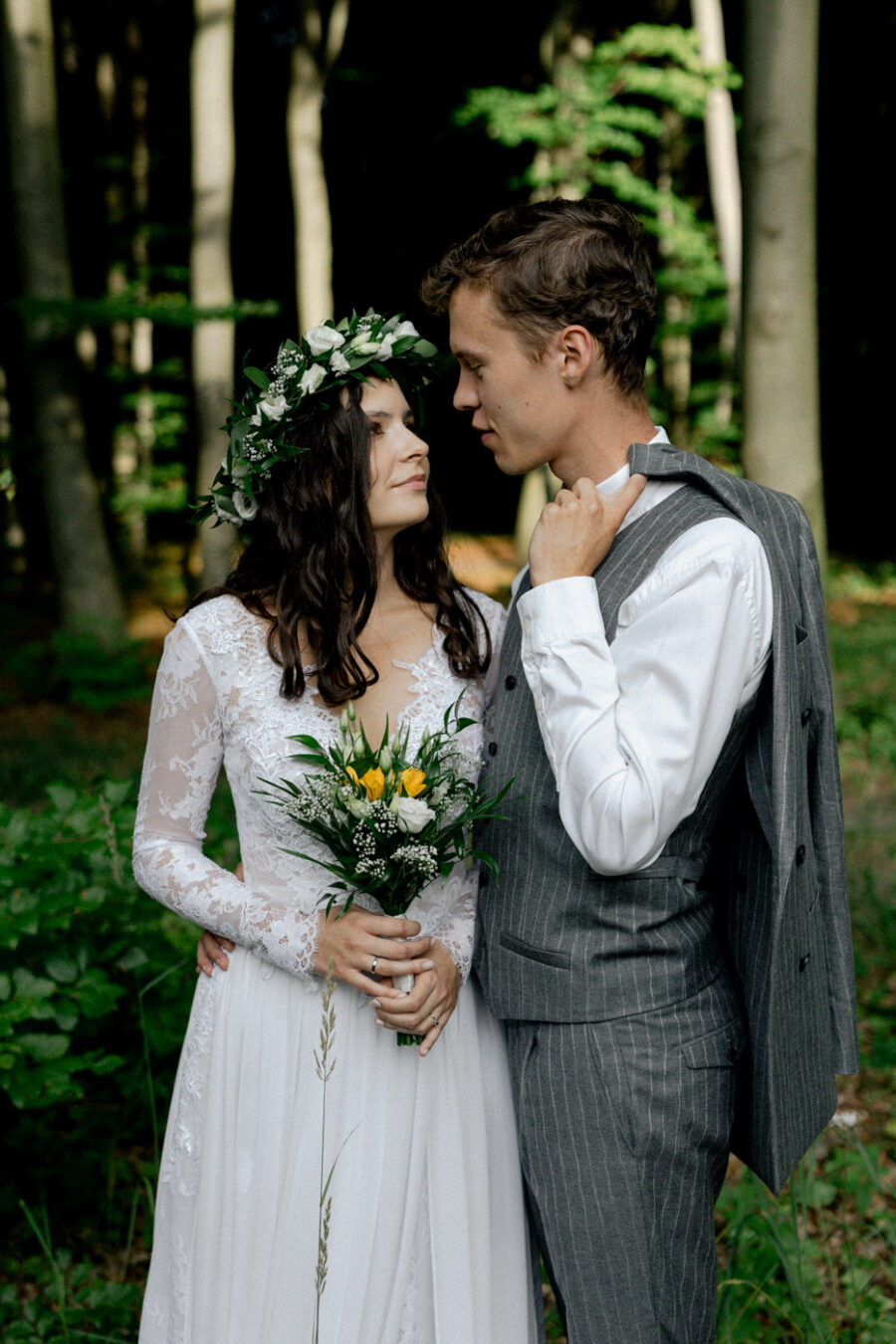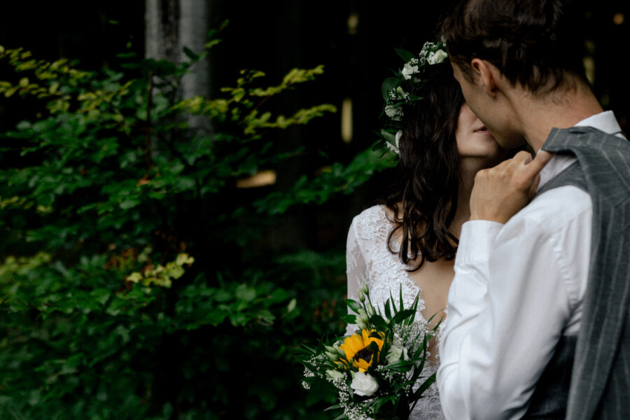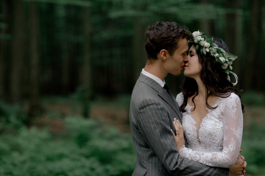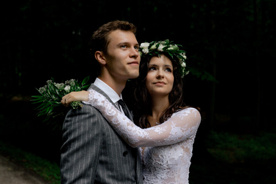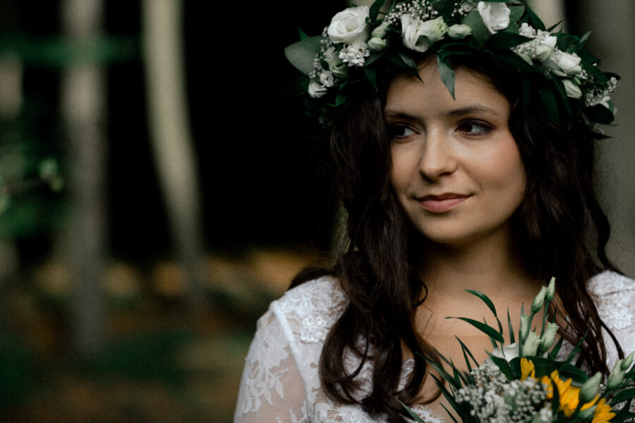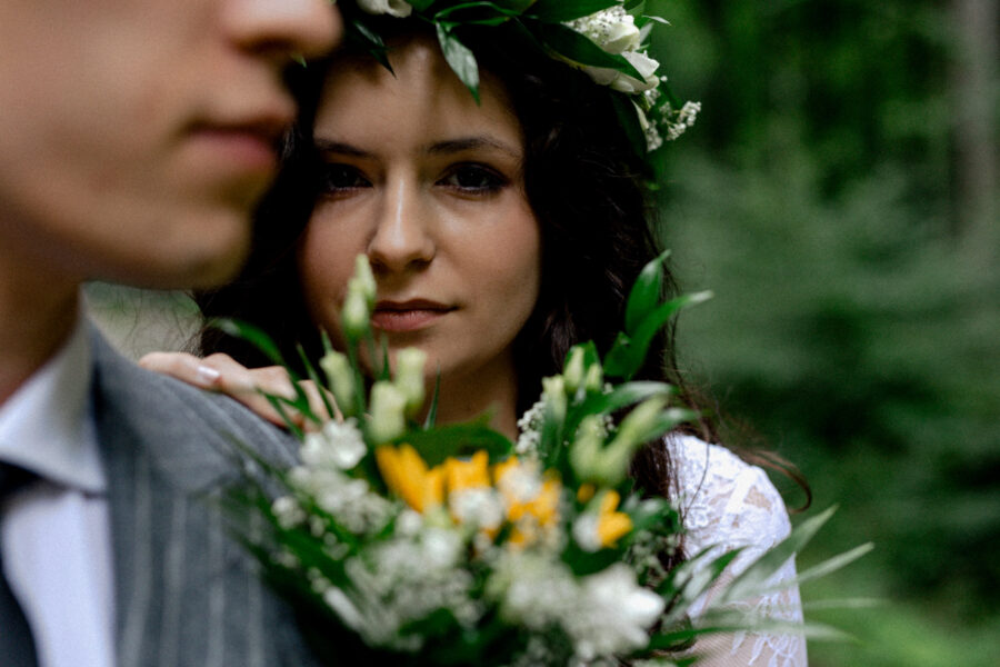 Dopełnieniem tego wyjątkowego dnia było przeprowadzenie sesji plenerowej w lesie, otoczonym zielenią i wszystkimi leśnymi stworzeniami, które z zaciekawieniem i zachwytem przyglądały się tej pięknej parze.