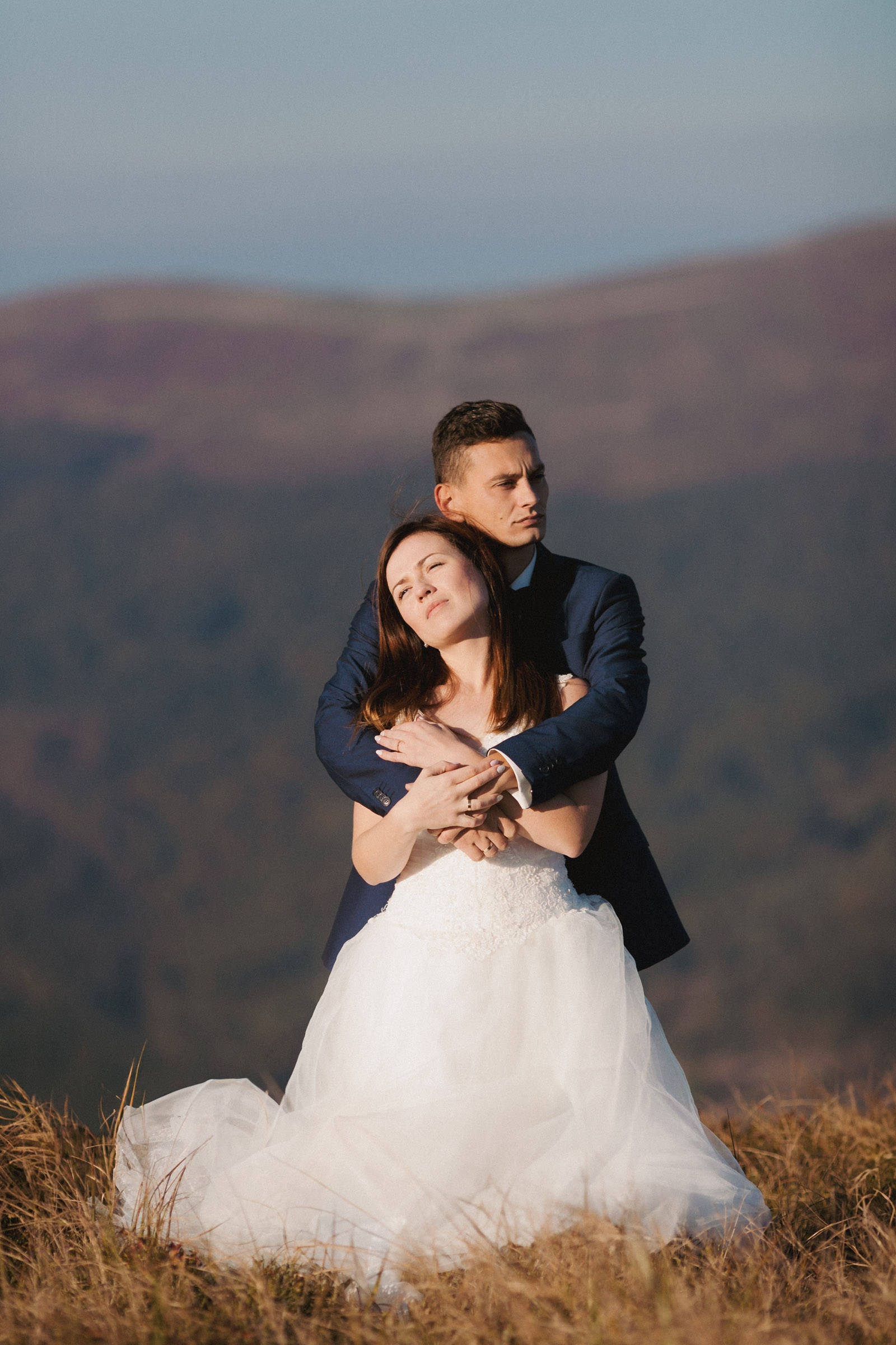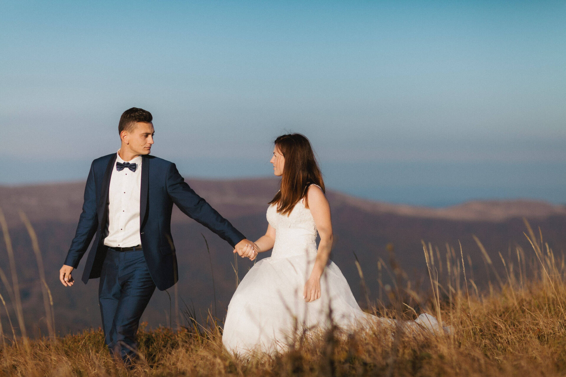 Kiedy dotarliśmy na szczyt Małej Rawki, przywitała nas cisza i wiatr, który lekko rozwiewał welon Izy. Widok na Połoninę Caryńską i Bukowe Berdo zapierał dech w piersiach – trudno o bardziej romantyczne tło dla zakochanej pary. Tomasz, z uśmiechem i czułością, patrzył na Izę tak, jakby czas zatrzymał się tylko dla nich.